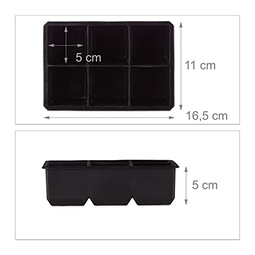 2x siliconen ijsblokjesvorm, voor vierkante XL ijsblokken van 5 cm, houder voor 6 ijsblokken, zwart