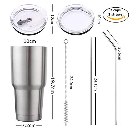 GROTE WAARDE VOOR GRATIS ACCESSOIRES: 2 roestvrijstalen rietjes, een reinigingsstroborstel en 2 spatwaterdicht deksel om uw dranken langer geïsoleerd en beschermd te houden! & een mooie geschenkdoos.