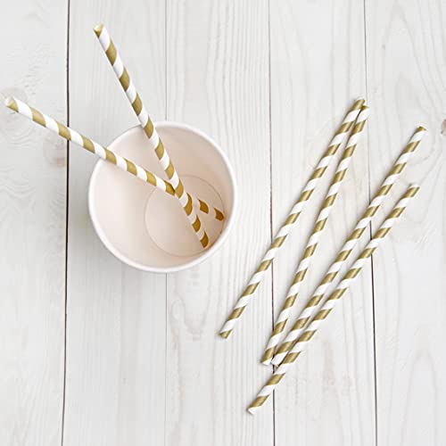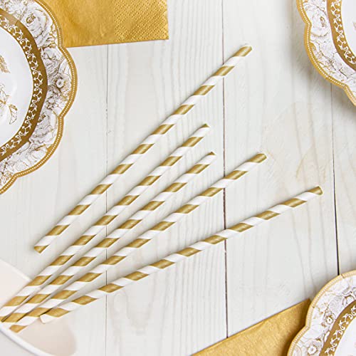 Talking Tables gestreepte metalen glans-rietjes voor bruiloften, verjaardagen en feestjes, goud (30 per verpakking)
