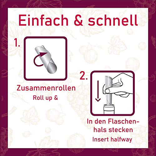 GEBRUIKERSVRIENDELIJK – rol de ronde folie op – steek de gadget halverwege in de hals van de fles – na het loslaten, rolt de wijndruppelbeschermer zich uit & past precies om de opening – eenvoudig & gemakkelijk