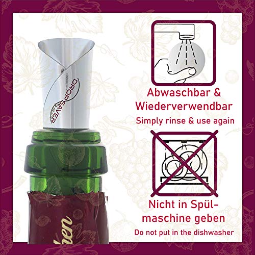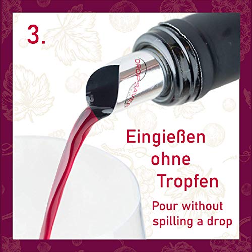 GEGECONTROLEERD SCHENKEN ZONDER KLIKKEN – Anti-druppel wijnschenker in edele optiek & het tafelkleed blijft schoon – Druppelvrije schenktuit geserveerd met behulp van de Wine-Pourer – Flexibele druppelstop