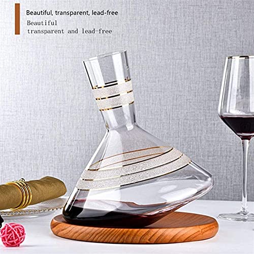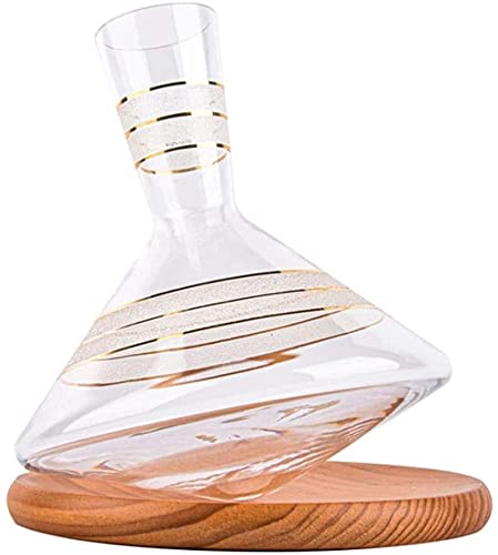 Decanter Balance Trace Gold Decanter met massief houten pallet, rode wijnbeluchter, perfect heden – 1000 ml Wijnfles