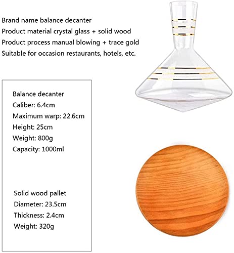 Specification: Decanter Balance Trace Gold Decanter met massief houten pallet, rode wijnbeluchter, perfect heden – 1000 ml Wijnfles